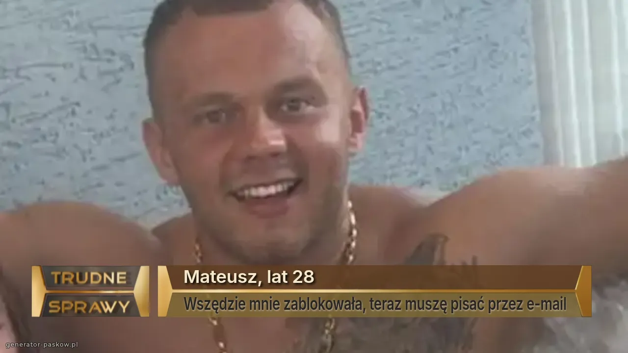 Mateusz, lat 28 Wszędzie mnie zablokowała, teraz muszę pisać przez e-mail