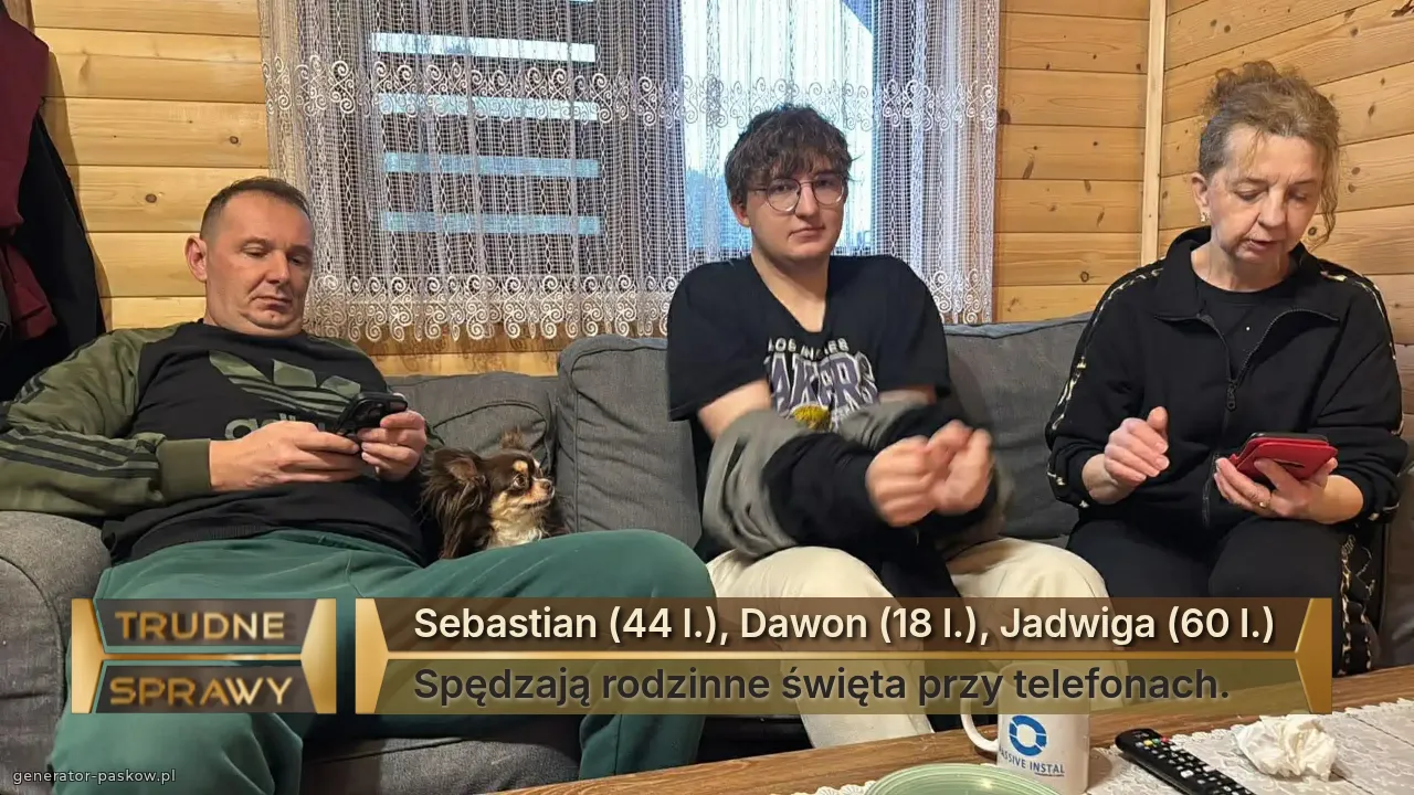 Sebastian (44 l.), Dawon (18 l.), Jadwiga (60 l.) Spędzają rodzinne święta przy telefonach.