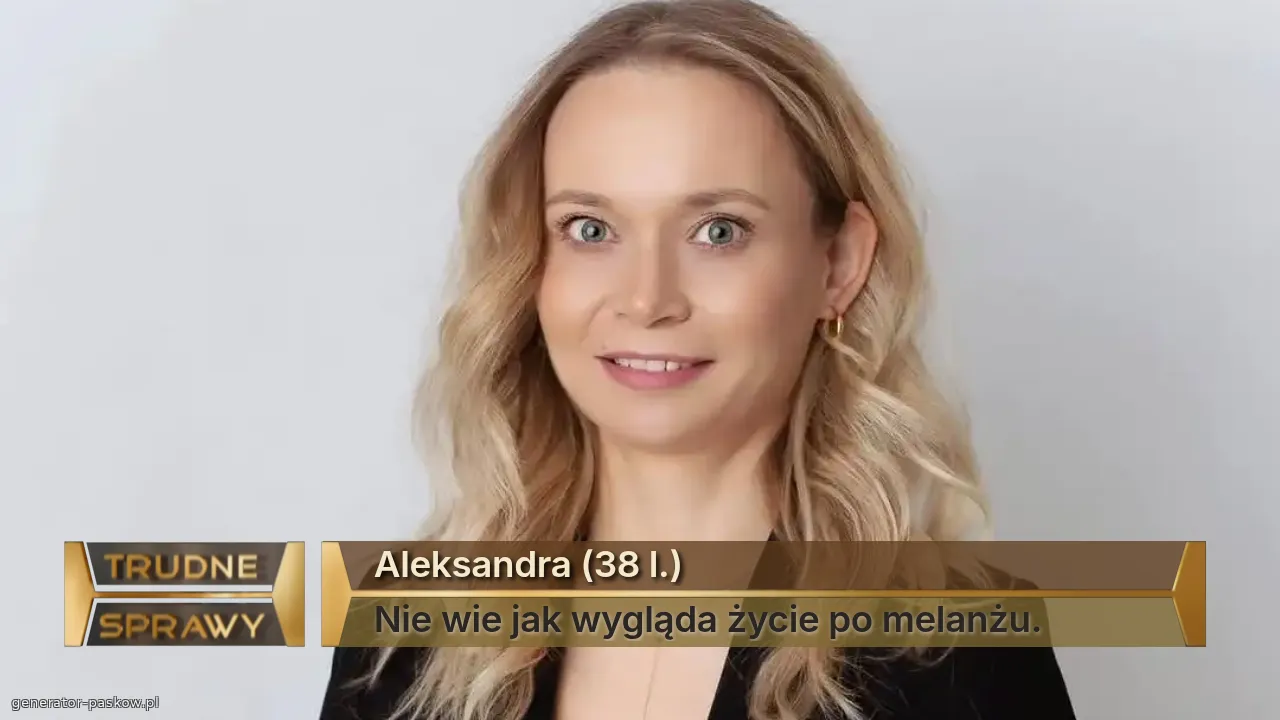 Aleksandra (38 l.) Nie wie jak wygląda życie po melanżu.