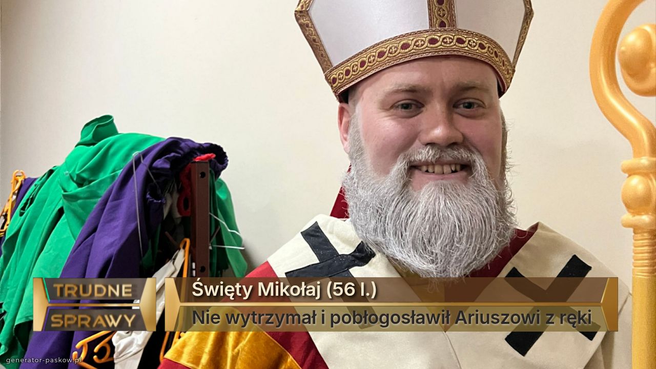 Święty Mikołaj (56 l.) Nie wytrzymał i pobłogosławił Ariuszowi z ręki