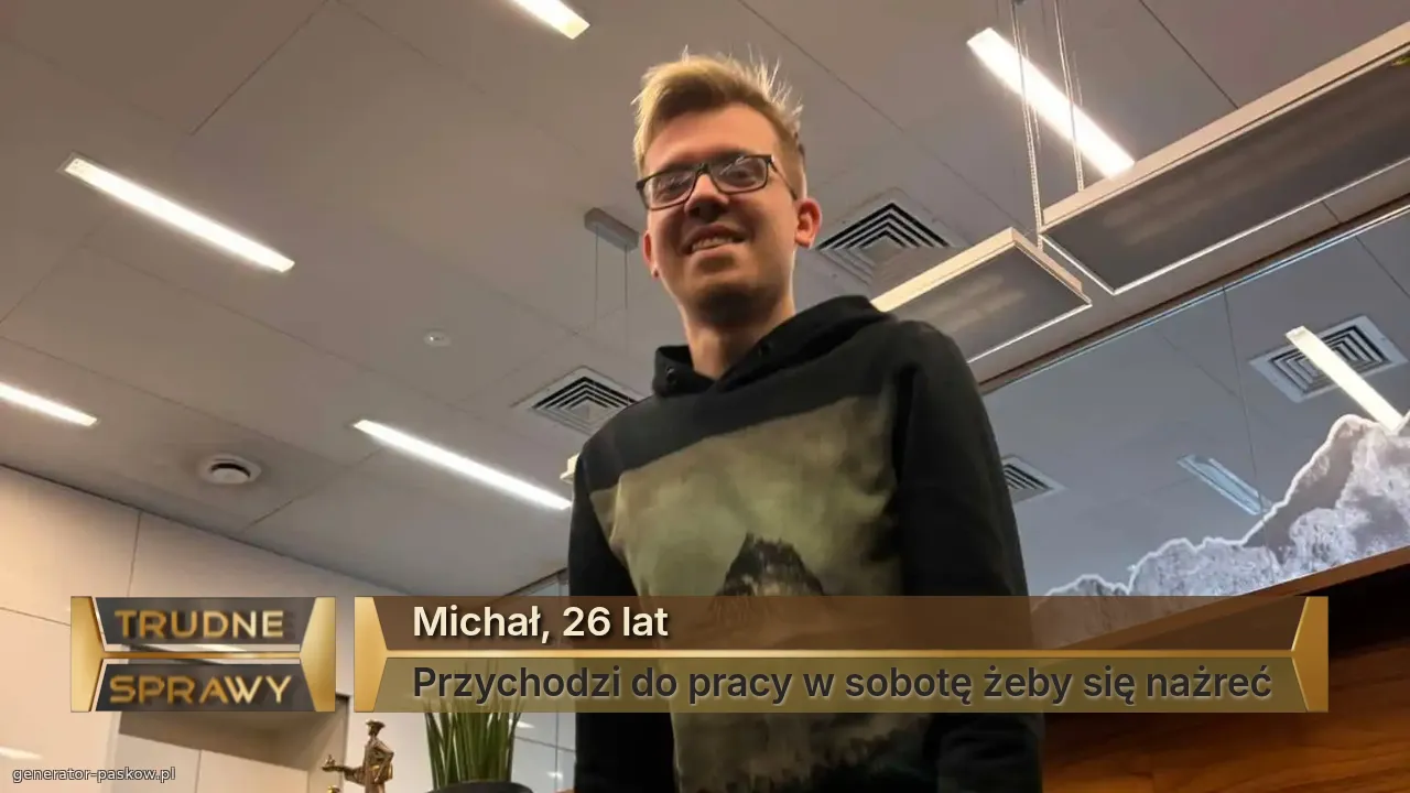 Michał, 26 lat Przychodzi do pracy w sobotę żeby się nażreć