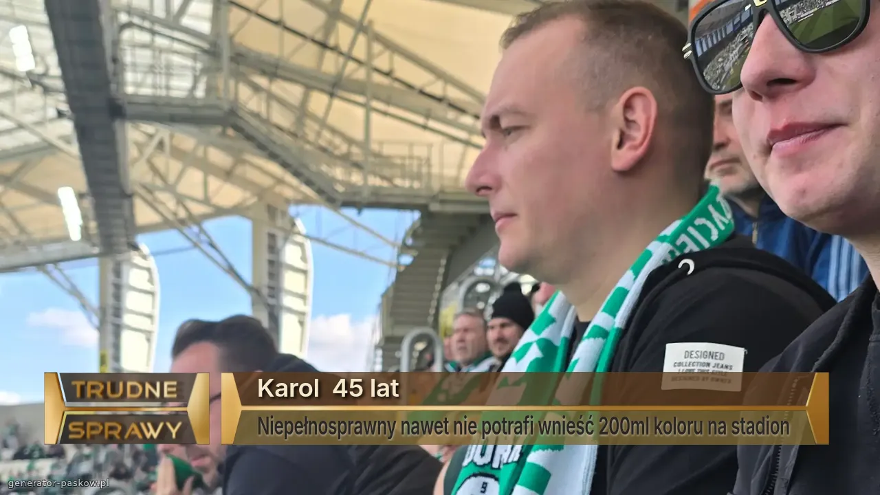 Karol 45 lat Niepełnosprawny nawet nie potrafi wnieść 200ml koloru na stadion