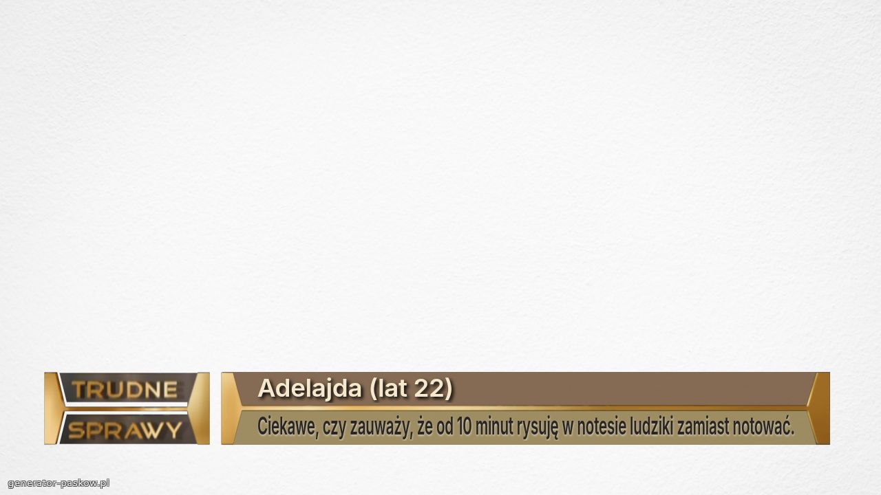 Adelajda (lat 22) Ciekawe, czy zauważy, że od 10 minut rysuję w notesie ludziki zamiast notować.