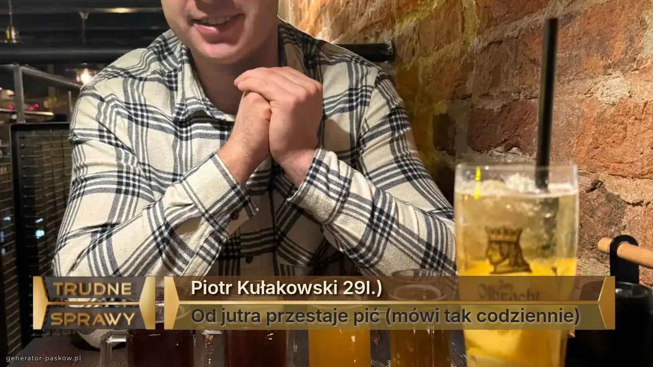 Piotr Kułakowski 29l.) Od jutra przestaje pić (mówi tak codziennie)
